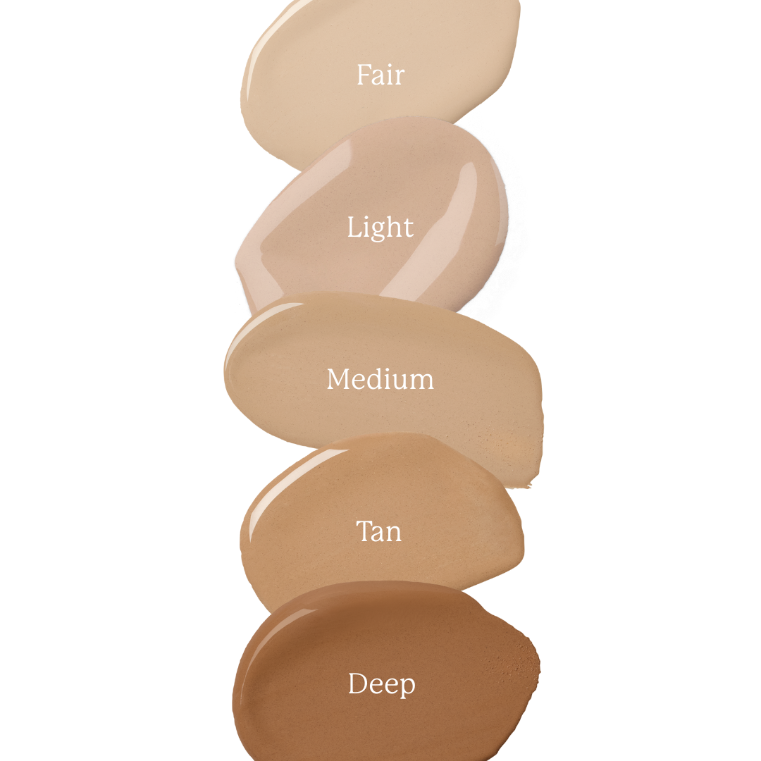 Dispense onto fingertips and rub gently to release and activate encapsulated pigments. As the shade begins to develop from white to your shade, apply to moisturized face and continue to blend for even coverage. Watch as it adjusts to your skin to immediately blur imperfections and even skin tone. The shade is fully developed when product is no longer white. Allow 1-2 minutes for shade to adjust completely. Set with one of our Total Protection brush-on sunscreens or follow with foundation for full-color coverage.